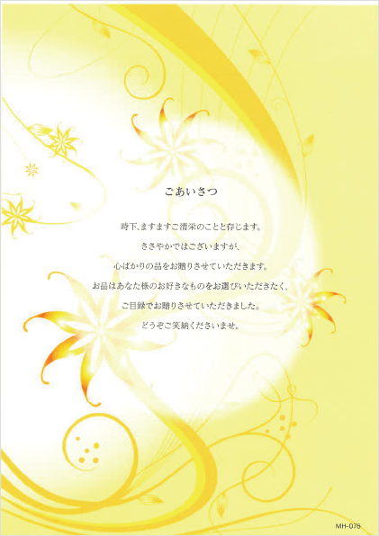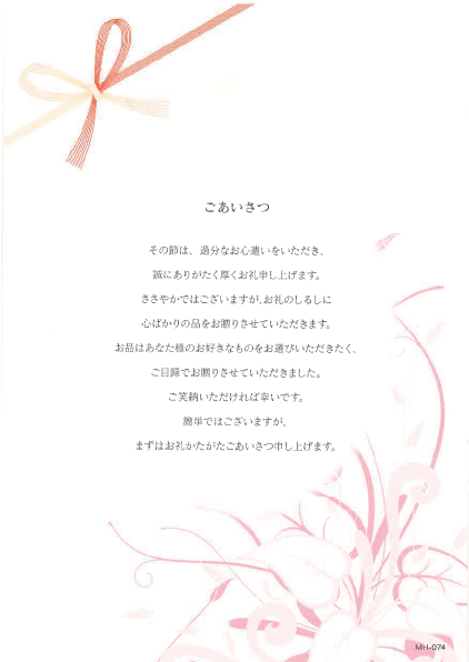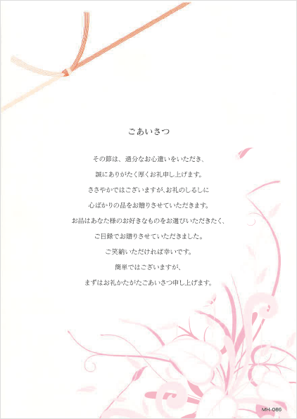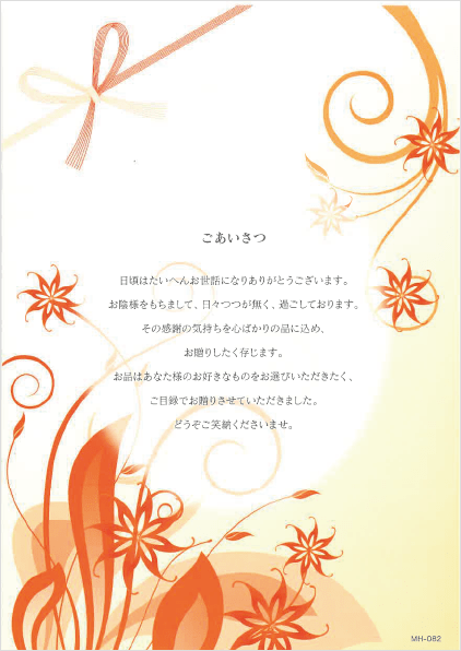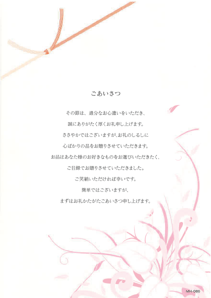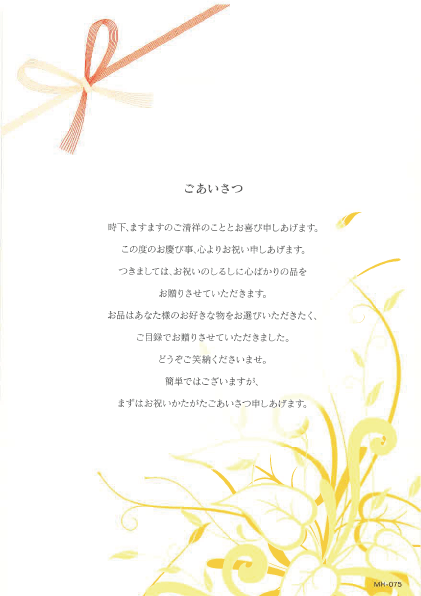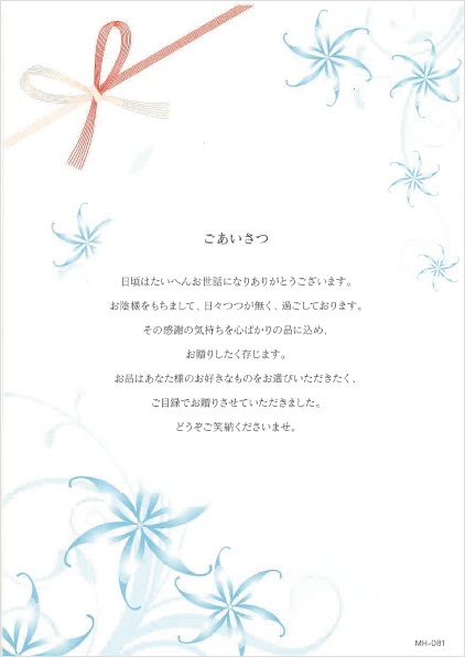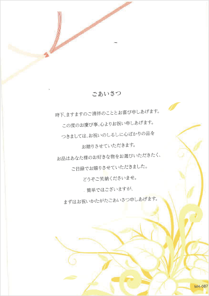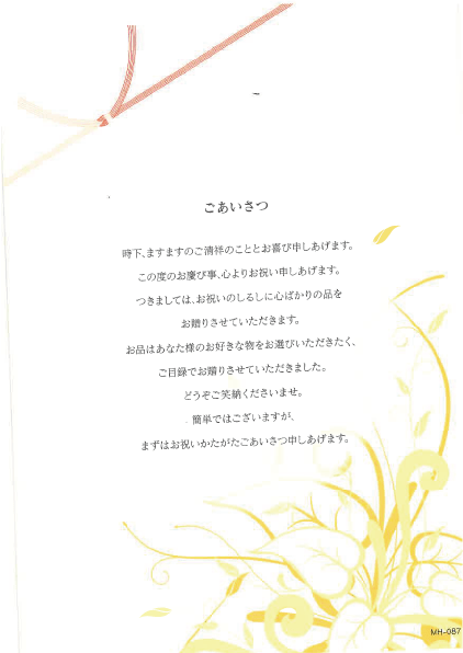お品はあなた様のお好きなものをお選びいただきたく、ご目録でお贈りさせていただきました。