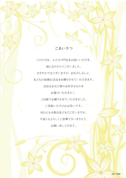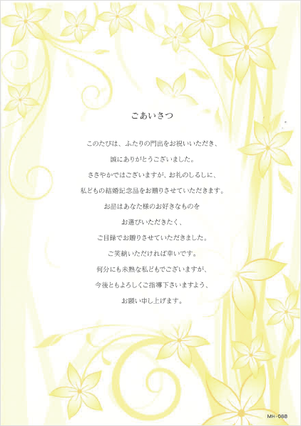 このたびは、ふたりの門出をお祝いいただき、誠にありがとうございました。
